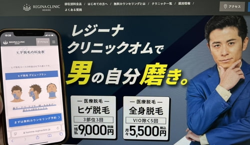 レジーナクリニックオムは男性専門の医療脱毛クリニックです。どの店舗も駅から徒歩10分圏内で、夜21時まで診療しているので仕事帰りでも通いやすいです。施術は完全個室でゆったりと施術を受けられるなどプライバシーへの配慮も徹底されています。