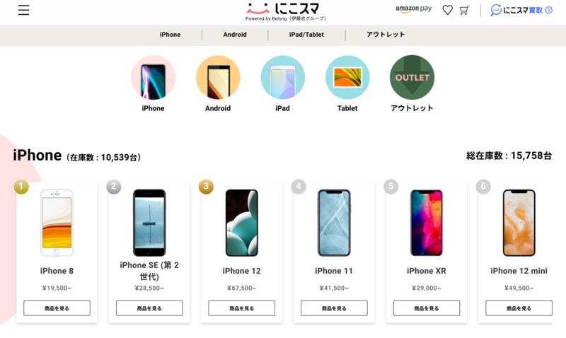 価格面では他店よりも若干高めとなっていますが、安心のサポート体勢と、厳正な検査基準をクリアしたスマホのみ取り扱っている点はかなり魅力!世界中でスマートフォンを流通している伊藤忠商事グループが運営する中古スマホ通販サイトという安心感もハナマルです。
