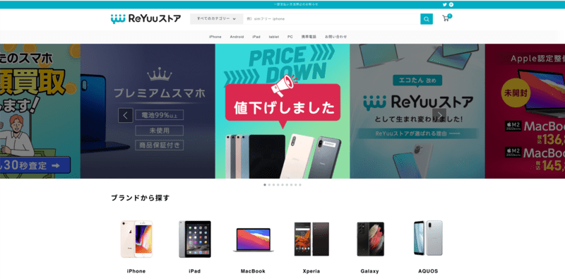 ダイワンテレコムは、中古携帯・スマホやiPhone・iPad・Androidなどの修理&買取&販売を行う満足度の高いショップ。品揃えも豊富で、状態のいい中古スマホがどんどん入荷するので、タイミングを逃さないように、頻繁にチェックすることをおすすめします!第7位:ReYuuストア