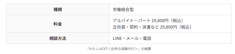 おすすめの退職代行業者#4:わたしNEXT<女性の退職代行>