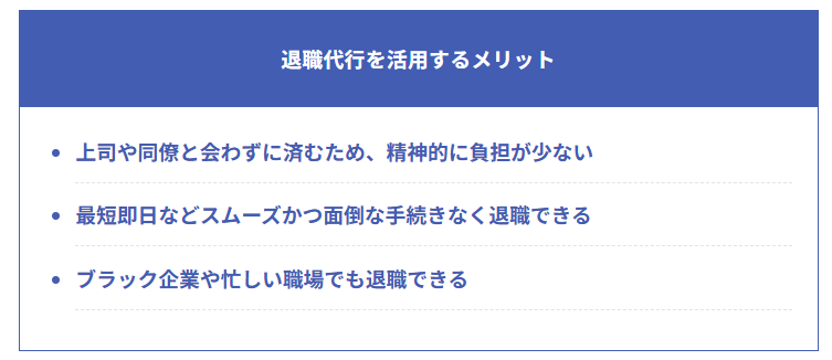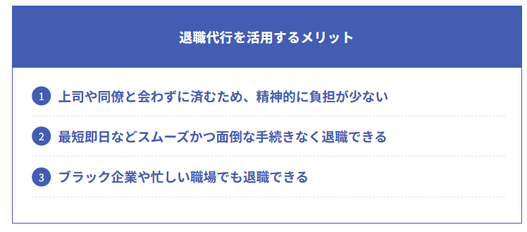 退職代行を活用するにあたってのメリットは下記の通りです。順にご説明します。