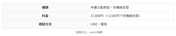 『退職代行Jobs』は弁護士監修型の退職代行サービスです。費用は27,000円と安価であるだけでなく、現金後払い(※)でサービスを受けることができるという点が強みとなっています。(※: 審査あり)
