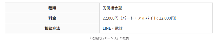 『退職代行モームリ』は労働組合型の退職代行サービスです。料金が22,000円と非常に安価で、神奈川県労働委員会の審査に合格した「労働環境改善組合」と提携しているため、会社との交渉も代理で行ってくれます。