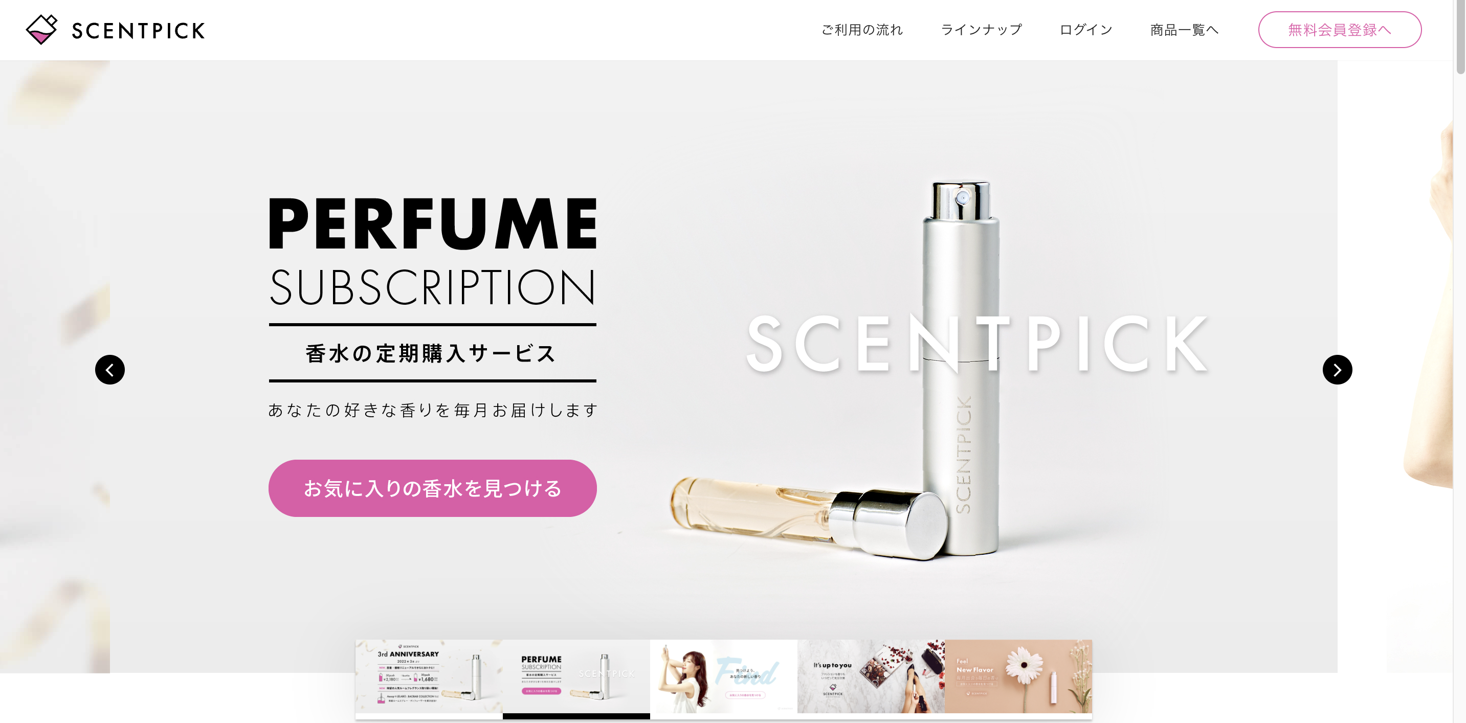 2位:『SCENTPICK(セントピック)』は香水の量を選んで月額料金を抑えたい人向き!