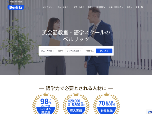 ベルリッツのオンライン英会話は98.1%の受講者が高く評価し、全世界で20,000社以上の企業へ導入実績のあるオンライン英会話サービスです。70カ国以上の国と地域による世界基準に則っており、質の高いレッスンを受講できます。