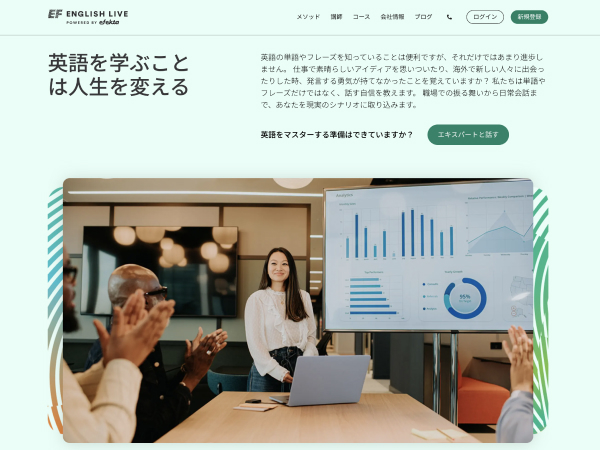 EF English Liveは月額制のサービスですが、1レッスンあたり約220円〜でリーズナブルな価格設定です。母体であるEFは40カ国以上に展開する世界No. 1の語学学校を展開しています。楽天・ANAなど大手企業にも取り入れられている安心の実績を誇るため、他社にはないノウハウを活用できます。