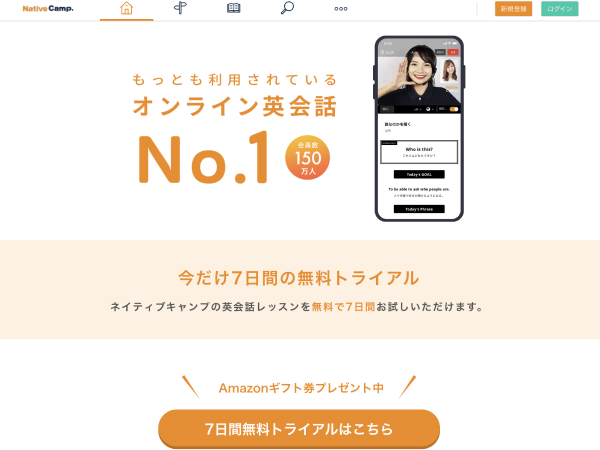 ネイティブキャンプでは初回のみ7日間の無料トライアルを提供しています。Amazonギフト券プレゼントキャンペーンも実施しているため、気になる人はぜひネイティブキャンプをチェックしてみてください。