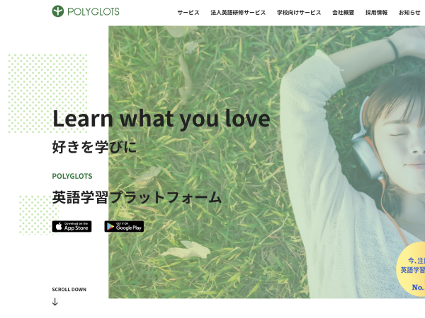 ポリグロッツは5年連続3冠を受賞しているオンライン英会話サービスです。「好きを学びに」をモットーとして、受講者一人ひとりに最適化された学習を提供しています。ポリグロッツには「レシピー」と呼ばれる英語学習プラットフォームを活用しながら学習を進めます。