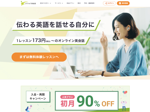レアジョブ英会話では無料体験レッスンを提供しています。初月は最大90%オフのキャンペーンも実施しています。お得に英会話学習を始めたいなら、レアジョブ英会話をチェックしてみてください。