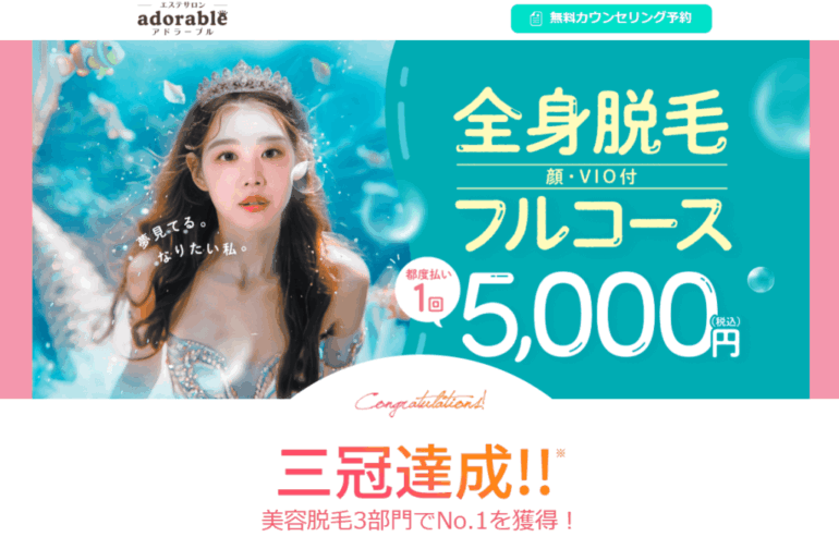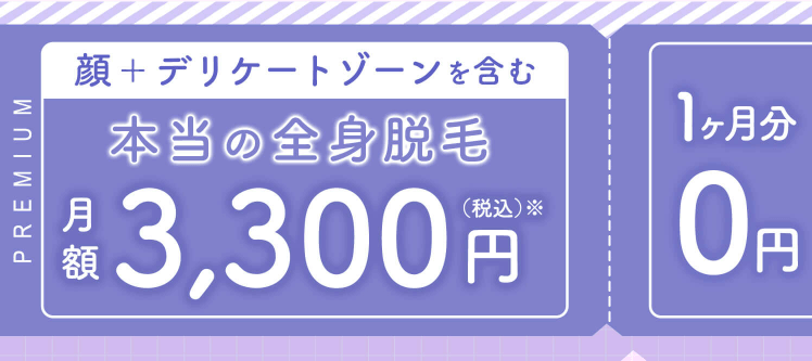 顔とVIOを含む全身脱毛が初月0円から受けられるので、お得に全身脱毛を受けたい方におすすめですよ!