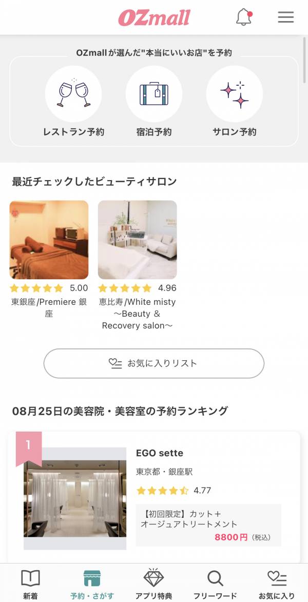 4位 OZmall(オズモール)-レストランやサロン予約&おでかけ