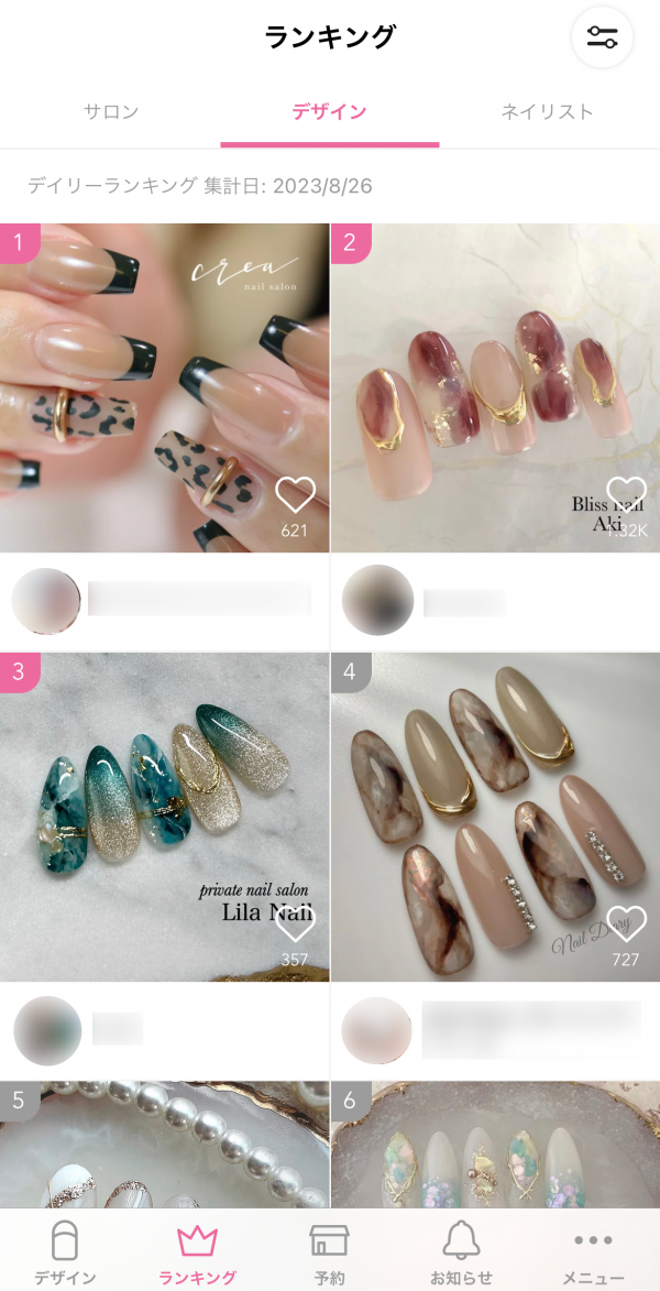 サロン・ネイルデザイン・ネイリストのランキングも掲載されています。集計期間は、デイリー・週間・月間の3種類。ランキングをチェックすることで、最新のネイルトレンドをキャッチでき、自分の好みに合ったネイリストやサロンを見つける参考になります。