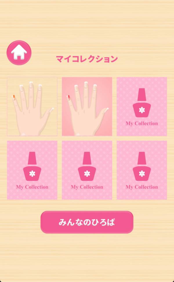 作成したネイルアートは、アプリ内にコレクションすることができます。そして作品を“みんなのひろば”に飾って、ほかのユーザーとシェアすることも可能。またほかの人の作品からデザインを学ぶこともでき、創造性を養うことにもつながります。