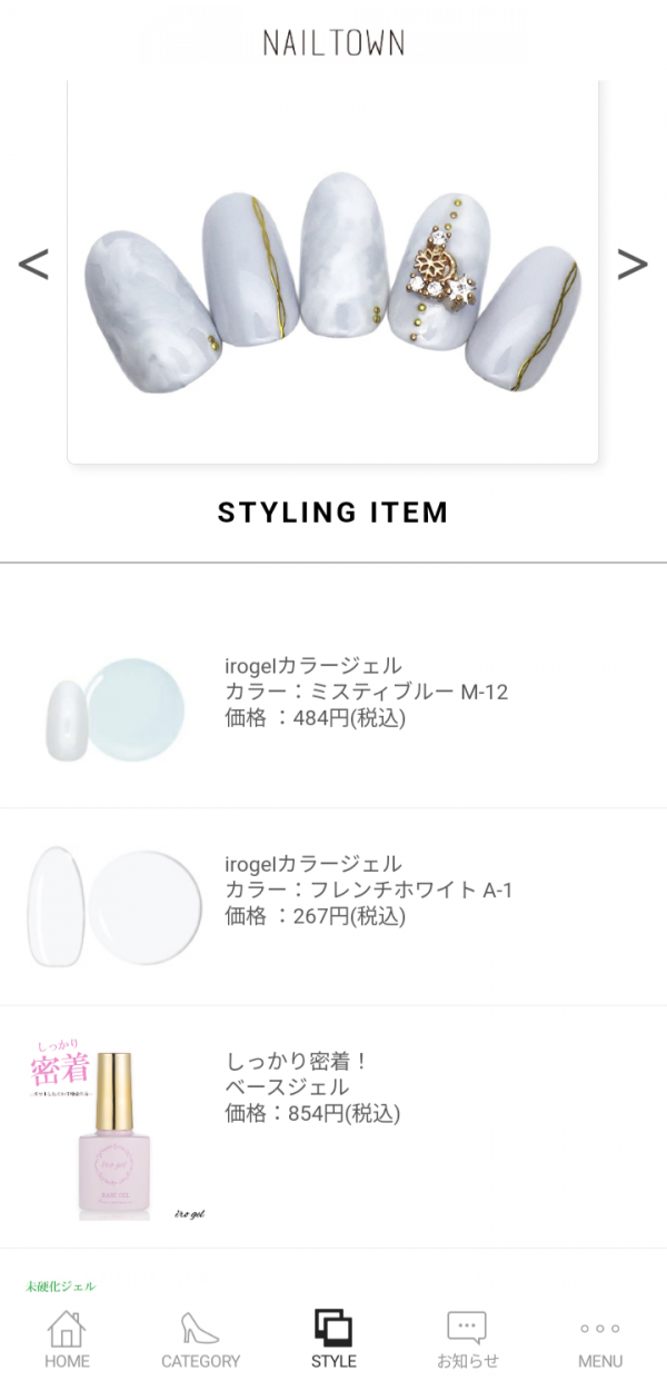 - ネイルデザインをチェック。使っているアイテムをアプリ内で購入