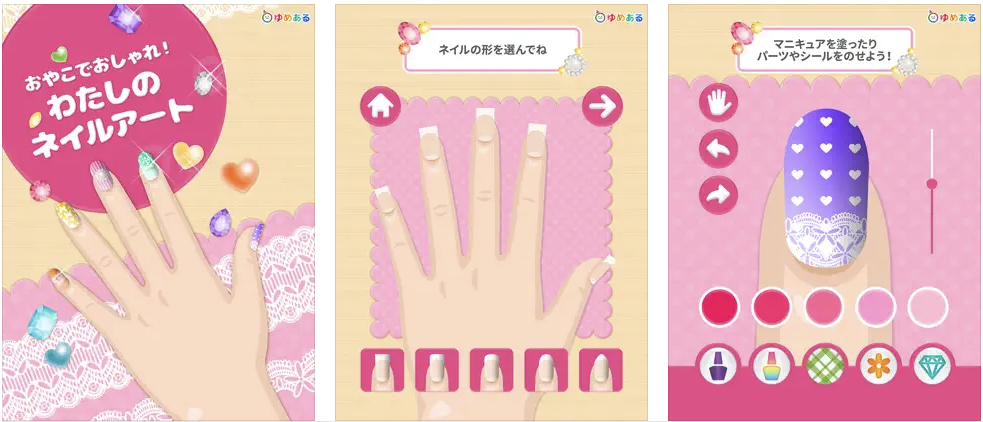 ネイルアートを手軽に楽しめるアプリです。豊富なカラーや装飾が用意され、それらの素材を使用してオリジナルのネイルアートを作れます。またタップやスライド・ピンチ操作など、簡単操作で使用できるのも魅力。作成したネイルはみんなと共有できます。子供と一緒に楽しむことができ、感性を育むのにも役立つでしょう。