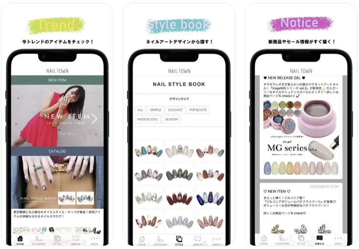 アプリで提供されるスタイルブックでは、トレンドを反映したネイルの情報が満載。シンプルなものから派手なものまで本当にいろいろなデザインがあります。自分に合うスタイルを見つけましょう。